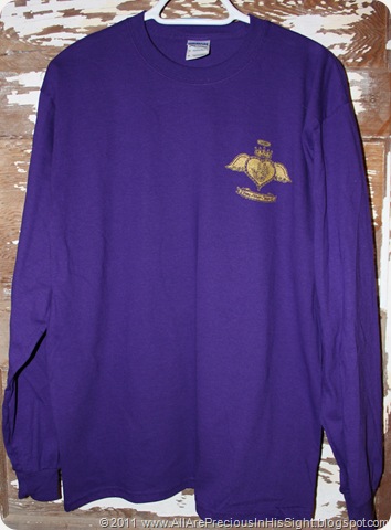 Purchase Purple Long-Sleeved T-Shirt with Scroll/Fancy Cross (available in adult and youth sizes) $25: